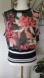 Pre-owned. Chic sleeveless top featuring a sheer, vibrant, floral design along with sporty black and white band. Perfect for adding a pop of color to your wardrobe. Comfortable and stylish for any occasion.