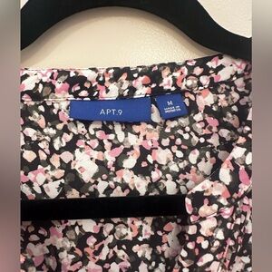 Easy to tie in front. Sheer. Collar. Silver buttons. Sleeveless.