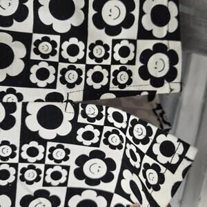 Design: This skirt features a charming black and white floral checkered pattern, with some flowers sporting a cute winking face. The front notch adds a stylish detail, making it a standout piece.