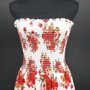 Floral Smoked Coquet Gyaru Sundress White Smocked Tube Top Stretch Size Large