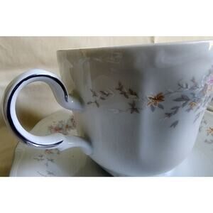 I believe this is from the 1980's. The decorative theme consists of pastel floral design set against bright white ground. The effect is highlighted by applied platinum trim.