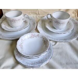 2 Large Plates, 2 Small Plates, 2 Saucers, 2 Tea Cups, 2 Bowls