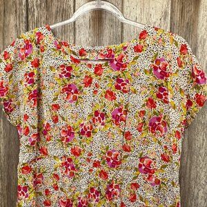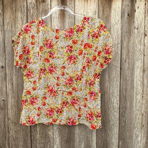 Floral Spotted Short Sleeve Scoop Neck Blouse
