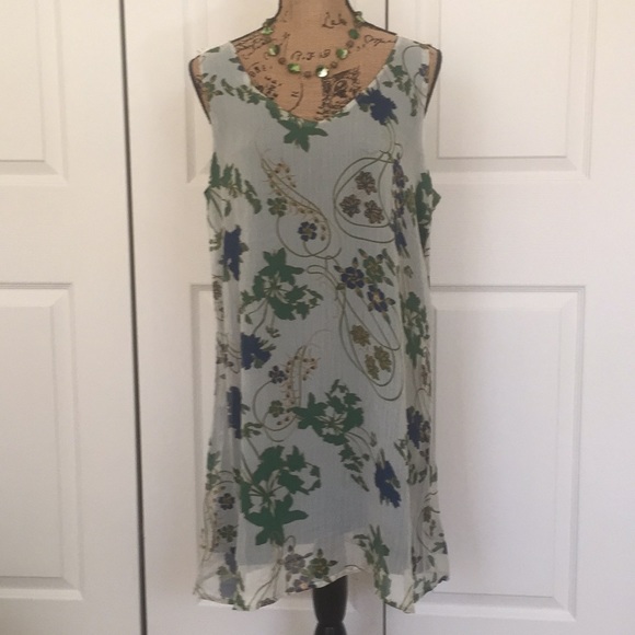 Great Spring Dress perfect for brunch! Above the knee length with a sheer overlay. Low plunge back.