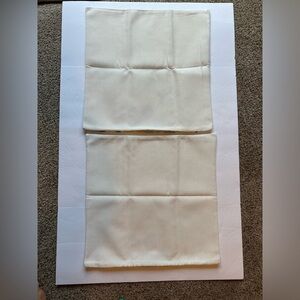 These are new but does not come in original packaging. There are no stains, tears, rips or holes. Great for outdoor or indoor furniture. Approximately 20” x 20”.