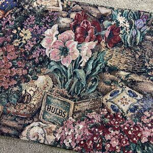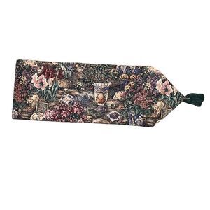 Floral Spring Table Runner Amaryllis Bulbs Hydrangeas Roses with Green Tassels