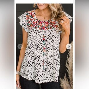Floral embroidery Square Next Flutter Sleeve Blouse, Size CL, NWOT