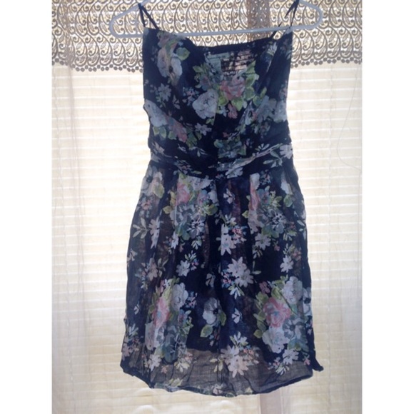 Cute strapless black dress with a unique pixelated floral pattern. Tag says XL but this dress would fit a medium easily.