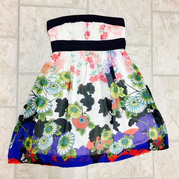 Forever 21. Two layer Floral Strapless Dress. Size Small. Worn Once, Like New Condition.