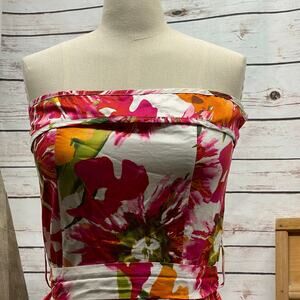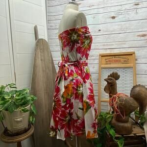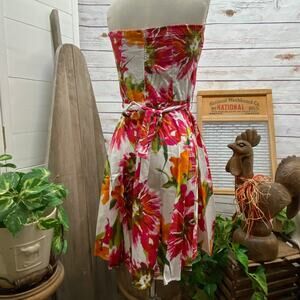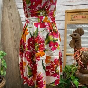 Floral Strapless Rockabilly Pin Up Dress Cotton Zipper Zip Up Back Medium