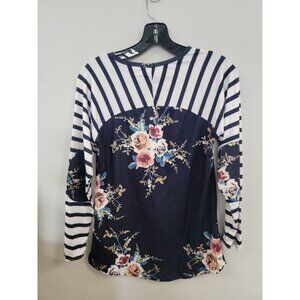 Floral & Striped Long Sleeve Baseball Tee Shirt Small