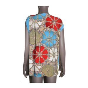 Floral Striped Sleeveless Tunic Boho Sleeveless Blouse Size Small
