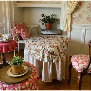 This vintage oval tablecloth showcases an intricate floral pattern, perfect for adding a touch of elegance to your dining area. Crafted from cotton, it offers durability and style, making it ideal for both casual and formal settings. Its red and beige hues complement various decors, while the seams provide a finished look.