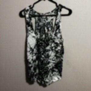 Black and white tank with floral pattern. Small pocket with studs on it.