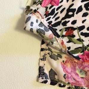 Floral tank, 100% Rayon, cut sides, an inch or so longer in the back than the front.