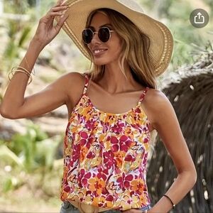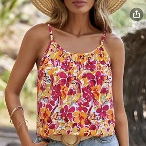 Vibrant Floral Print Cami Top Adjustable Spaghetti Straps, Lightweight & Sleeveless - Perfect for Summer Vacations, Trendy