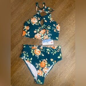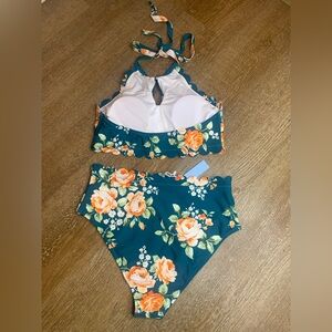 Dive into summer with this stunning floral teal bikini set. Perfect for beach days and poolside lounging.