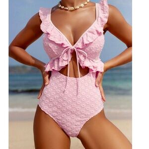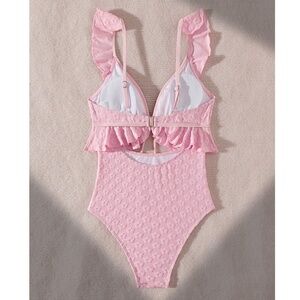 Floral Textured Print Plunging Neck Cut out Monokini One Piece Swimsuit