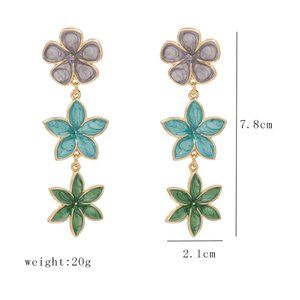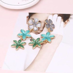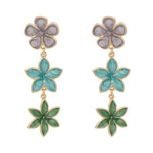 Floral Three Tier Gray Blue Green Flower Drip Oil Enamel Drop Earrings NEW