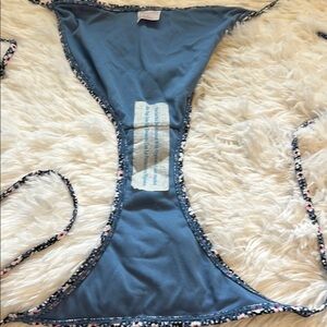 Chic floral bikini bottom with tie sides. Features a stylish floral pattern in black, white, and pink.