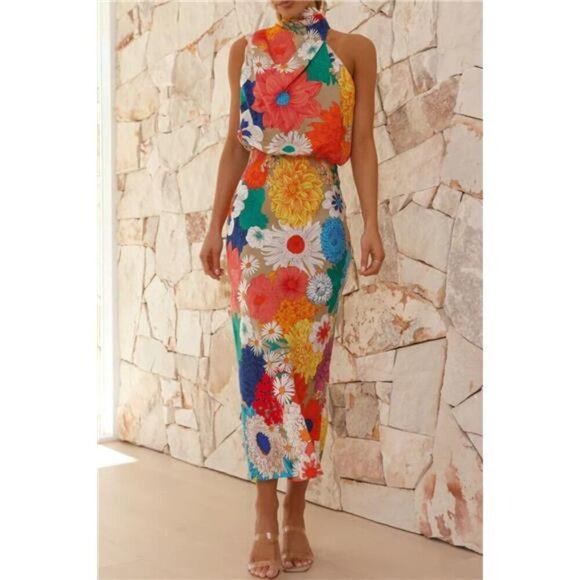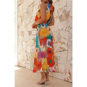Floral Tied Back Sleeveless Midi Dress