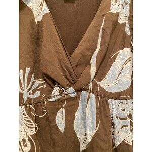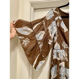 Floral Tiered Blue Brown Silk Overlay Dress Flutter Sleeves