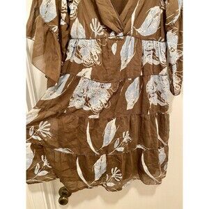 Floral Tiered Blue Brown Silk Overlay Dress Boho Gypsy Flutter Sleeve Mini