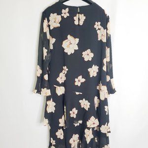 Floral Tiered Sheer Bell-Sleeved Cottagecore Dress