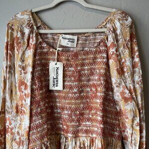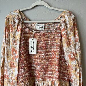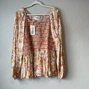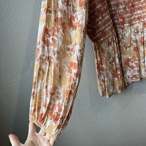 Floral Top 2x Boho cottage peasant Long Sleeve Embroidered smocked cute prairie