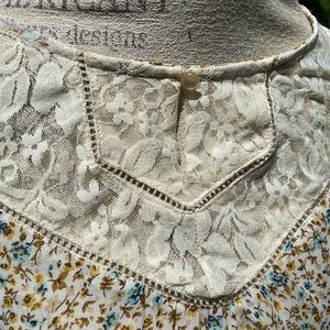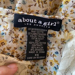 Floral top size XS. From the brand “about a girl”. Good used condition, sheer material so an undershirt is probably needed. Elastic band around bottom so it’s loose but the bottom tightens