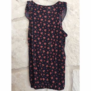 •Navy top with ruby red flower pattern •Cute, feminine ruffled shoulders with button detail •Perfect for any cute casual occasion! Tags: free people, PacSun, Boho, cotton, flowers, floral, girly, blouse, navy, shoulder detail, neckline, festival, NYC