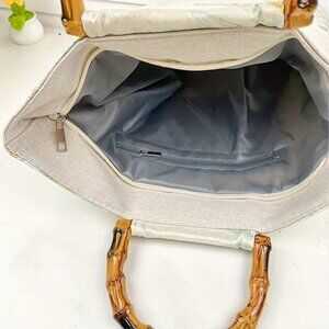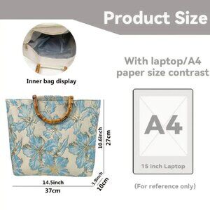 Floral Canvas Tote Bag Stylish Floral Print Canvas Tote Bag for Women | Large Capacity, Double-Sided Design with Golden Accents, Zipper Closure, Oil-Free Edge, Commuter Hand