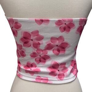 Add a touch of floral charm to your wardrobe with this adorable tube top! Featuring a delightful floral pattern in white and pink hues, this top is perfect for sunny days and casual outings.