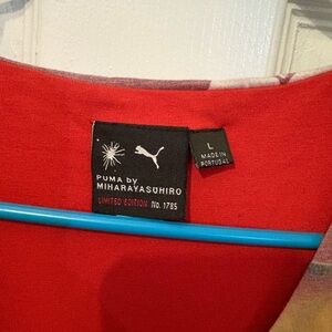 Stylish tunic featuring a floral and guitar print. Accented with red details and pockets.