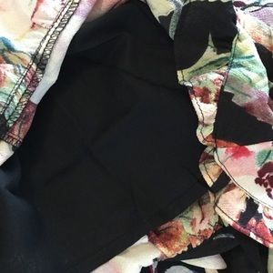 NWT Floral Print V-Neck Ruffled Romper. Color is Black Mix. Quality Boutique Item. No trades. Hook clasp at top of the romper for easy on and off. Shorts part of romper is lined. True to size. 55% Cotton 45% Polyester. HOST PICK for Best in Boutiques ππ Large measures 21β across from armpit to armpit and is 16β across waist. Waist is a stretchy elastic waist. Those measurements were taken without stretching.