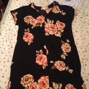 asymmetrical floral dress. higher in the front than in the back (as shown in photos)