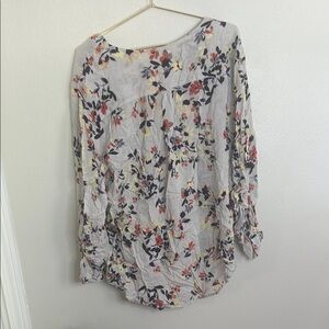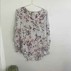 Elevate your style with this elegant floral V-neck blouse. Featuring a beautiful blend of gray and pink, this top is perfect for any occasion. Pair it with your favorite jeans or skirt for a chic look.