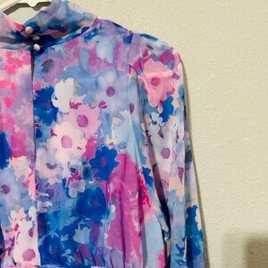 Elevate your style with this stunning floral V-neck chiffon top. Featuring a blend of vibrant colors, this top is perfect for any occasion. The lightweight fabric ensures comfort and elegance.