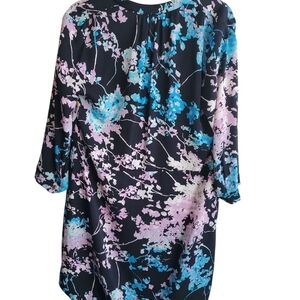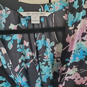 Elegant floral V-neck dress with vibrant colors. Perfect for any occasion.