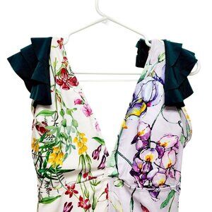 Floral V-Neck One-Piece Swimsuit With Ruffle Sleeves Size S