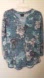 Stylish floral V-neck top with 3/4 sleeves. Features a blend of blue and white colors.