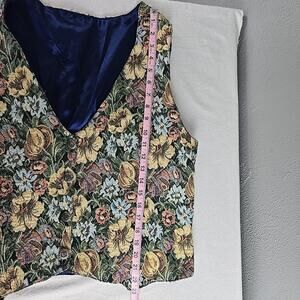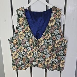 Good Condition, Unbranded Floral Tapestry Button Front Vest, Blue Satin Like Material Liner, Large