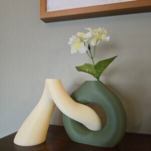 Floral Bud Vase Set of 2 Intertwining Smooth Textured Zen Garden Art 3D Printed (cream & green color option shown) Lightweight Home Décor. Please message for other color combinations/options.