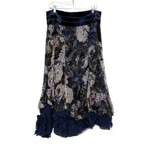Floral Velvet Chiffon Skirt Silk By Background Boho Whimsy Italy Size 46 / US 10