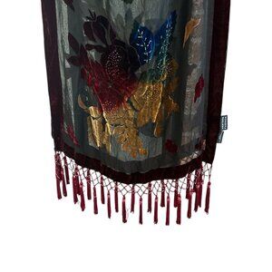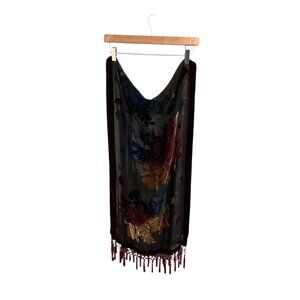 Floral Velvet Sheer Scarf With Tassels - Western Fashion 30% Silk 70% Viscose