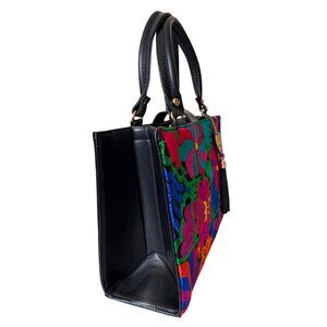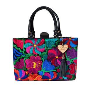 Floral Vibrant Tapestry embroidery artisanal handbag satchel vegan leather w mak