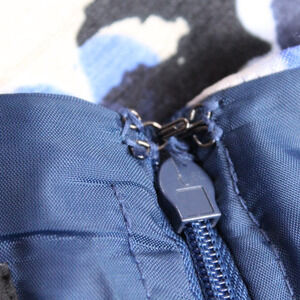 Color: White with floral prints in Navy blue, periwinkle, and lime green