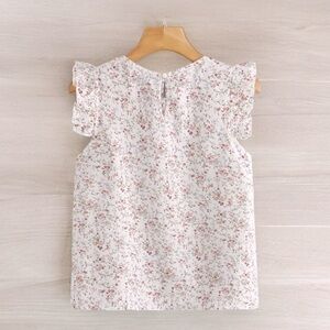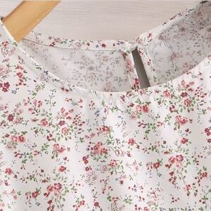 Floral White Pink Ruffle Sleeves Top