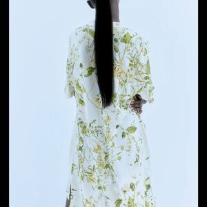 Elegant floral dress in white and green, perfect for any occasion. Features a comfortable fit and stylish design.