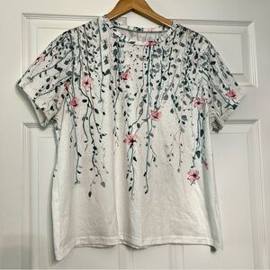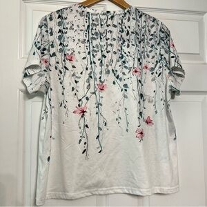 Embrace elegance with this floral women's top. Featuring a beautiful white base adorned with pink floral accents, this top is perfect for any occasion.